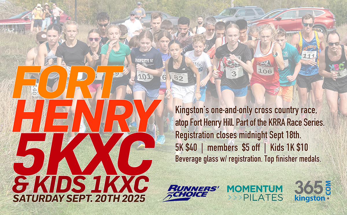 The Kingston Road Runners Association (KRRA) presents their one-and-only annual cross country race. The Fort Henry 5KXC cross country event at Fort Henry Hill takes place on a well-groomed trail overlooking Fort Henry, RMC and the entire city. It is a closed course race used by many clubs and associations. The Kids 1KXC will take place prior to the 5K. It is part of the Kingston Kids Race Series.