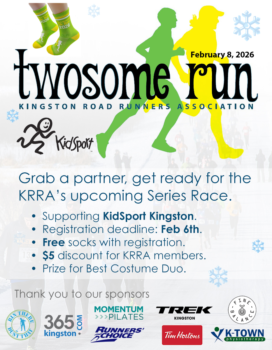 In this unique winter event, runners compete as individuals for KRRA series points, but can also compete as male-female teams for “twosome” overall and combined age group placings. Same-gender teams are welcome. Medals are awarded to top 3 overall winners and top 3 in each age group. All runners (twosomes and “onesomes”) qualify for KRRA series points. Check back here for news on updates for the upcoming 2026 Twosome Run.